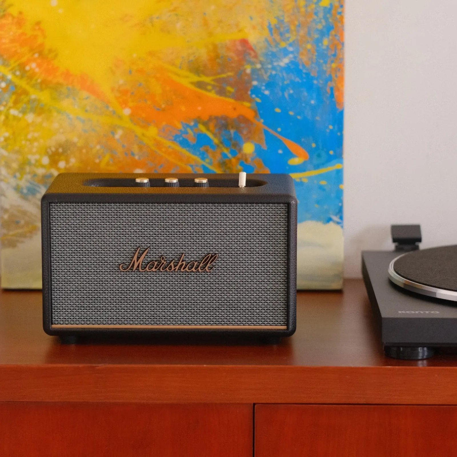 - Người thích phong cách retro/modern mix: gỗ tối giản của Kanto + “amp look” của Marshall tạo điểm nhìn rõ trên kệ.